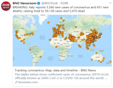 - 意大利新增确诊5560例死亡651例,确诊总数59138例